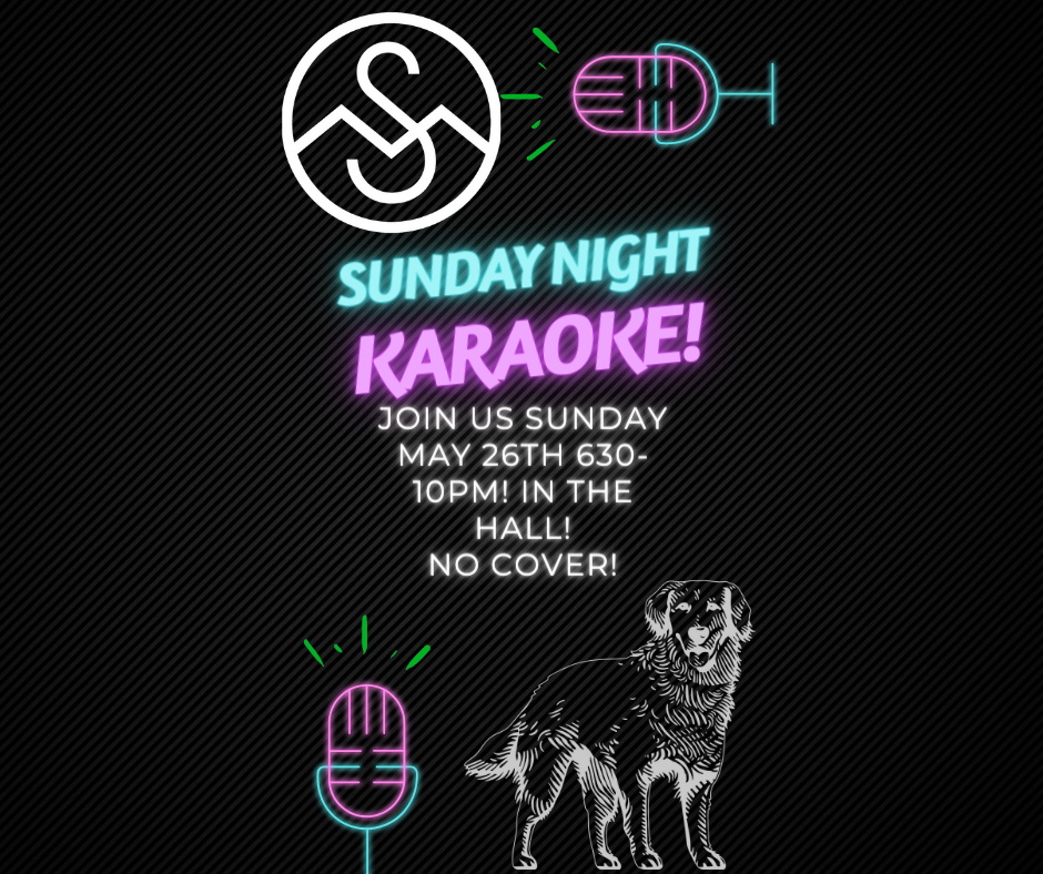 Stay late or come after and join us for our Sunday Night Karaoke! 630-10 Pm!