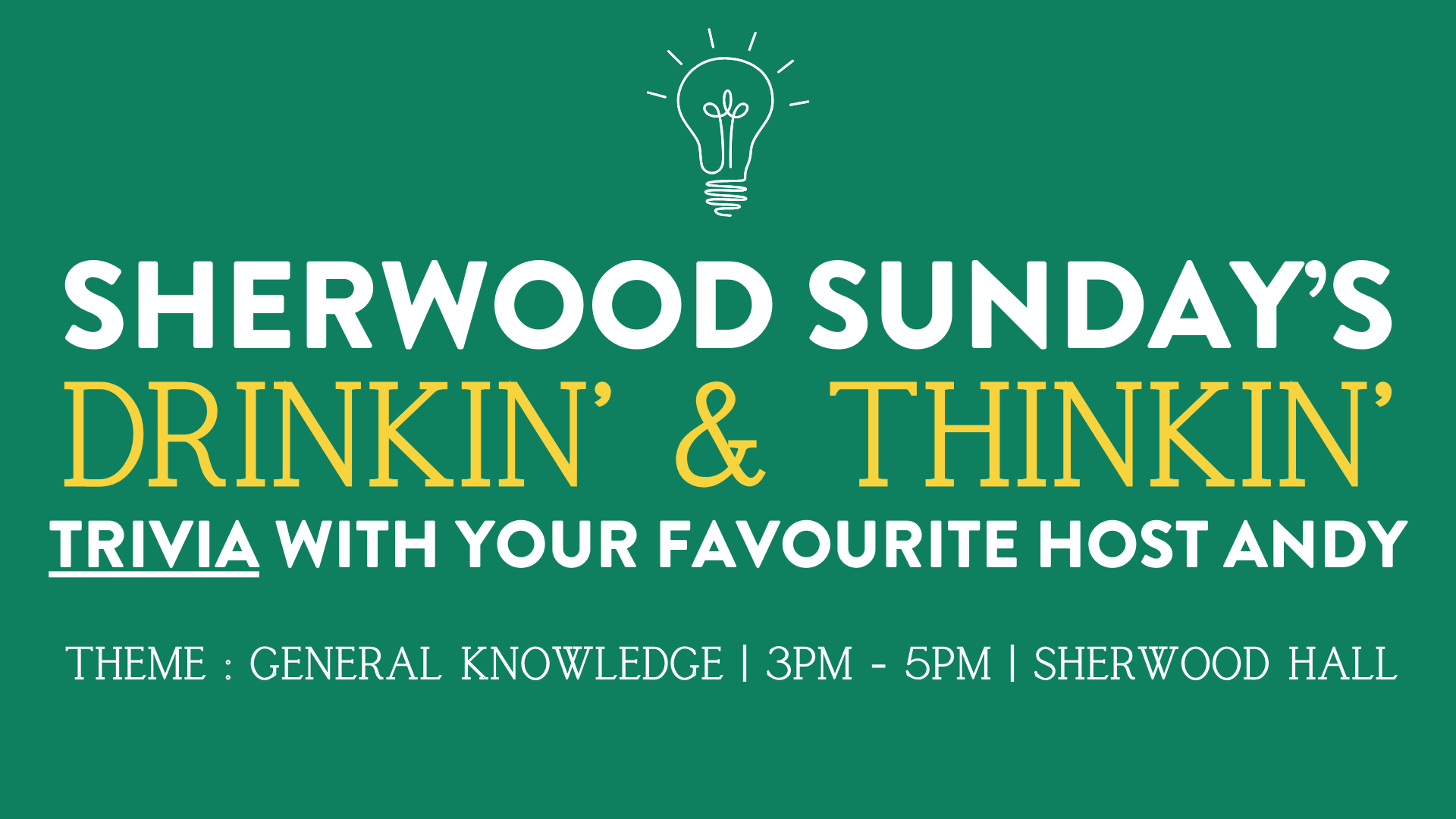 THIS WEEKS THEME : General Knowledge Bring your friends, family & put your brains to the test! Every other Sunday at the Sherwood Mountain Brewhouse Hall 3-5pm with our great host Andy!!
